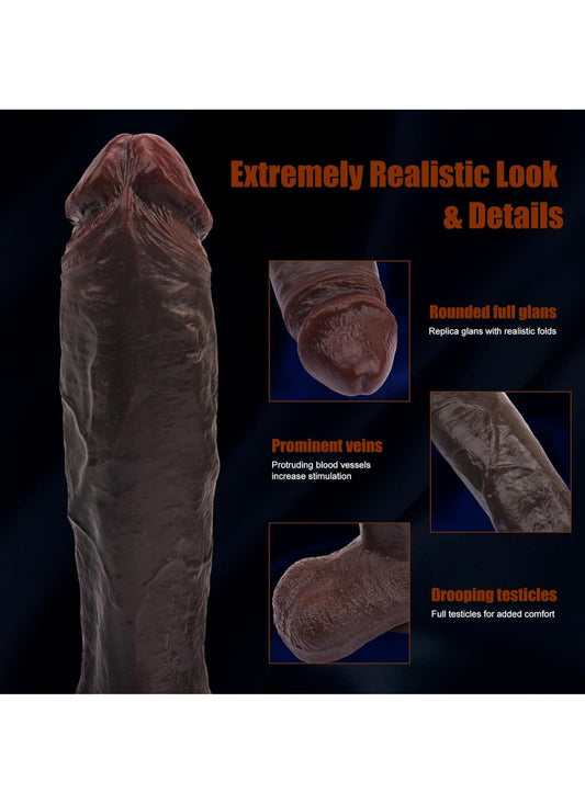 9.8 inch Huge Realistic Dildo Adult Sex Toys for Women Men Orgasm, Soft Silicone Anal Dildos with Suction Cup for Hands-Free, Thick Black Lifelike Dildo with Curved Shaft and Big Balls for G Spot Play