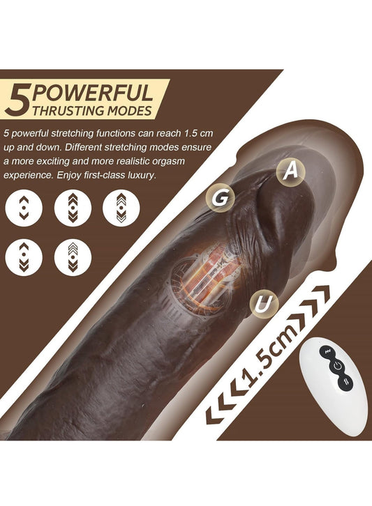 9 inch Thrusting Dildo Vibrator Sex Toy for Women, Black Realistic Vibrating Dildo w/5 Thrusts & 8 Vibrations, Strong Suction Cup Silicone Dildo