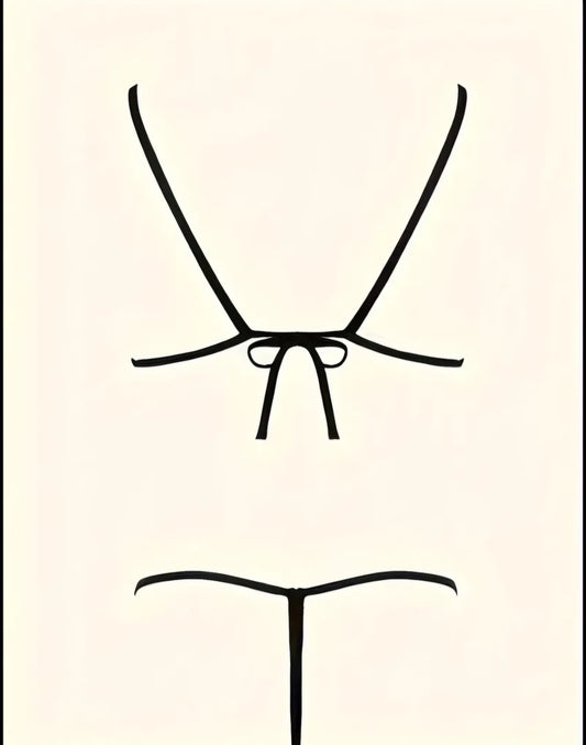 Deep Purple Heart-Appliqué Lingerie Set – Sheer Mesh Bralette & Chain-Linked Thong. Size L