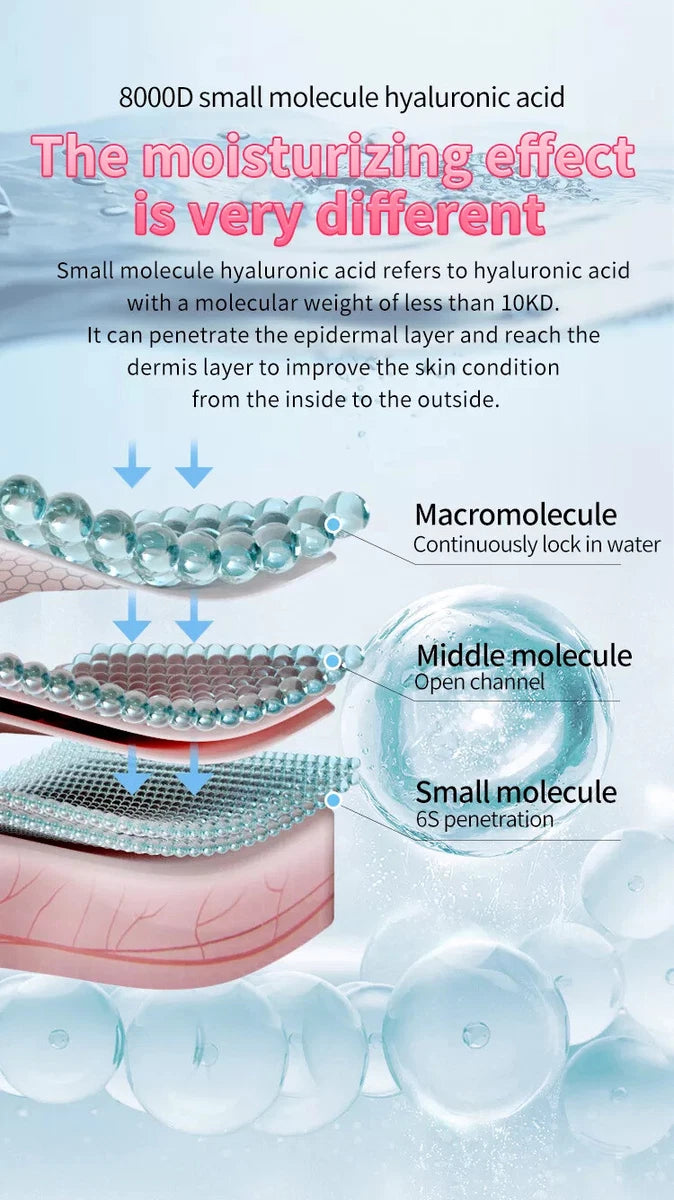 Advanced Hydration: Formulated with 8000D small-molecule hyaluronic acid, which penetrates the epidermal layer to improve skin condition from the inside out.